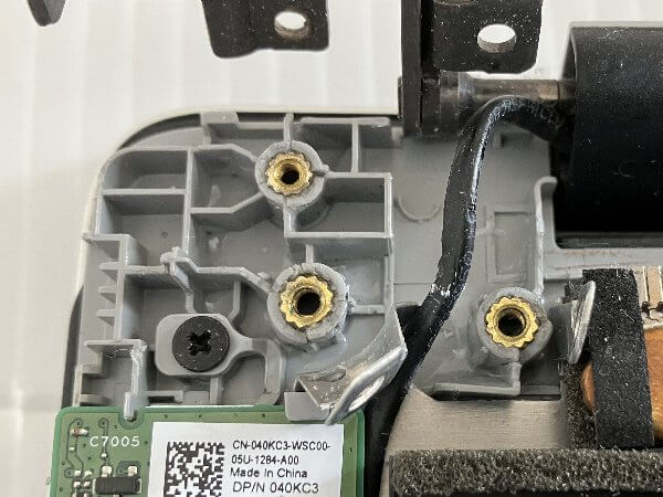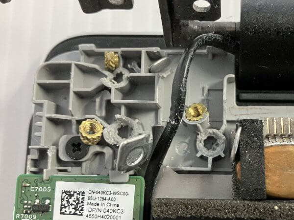 隙間から本体下部のねじ受けが破損していました。カバー内部のねじ受け3つ中3つとも破損。