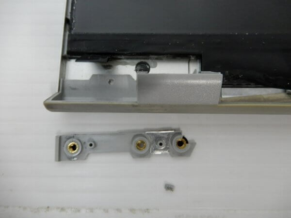 分解するとヒンジを固定するプラスチックが完全にはがれていました。右側。