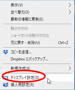 1.デスクトップの何もないところを右クリック→「ディスプレイ設定」をクリック