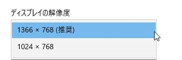3.クリックすると設定できる解像度が表示されます。解像度はパソコンごとに異なります。